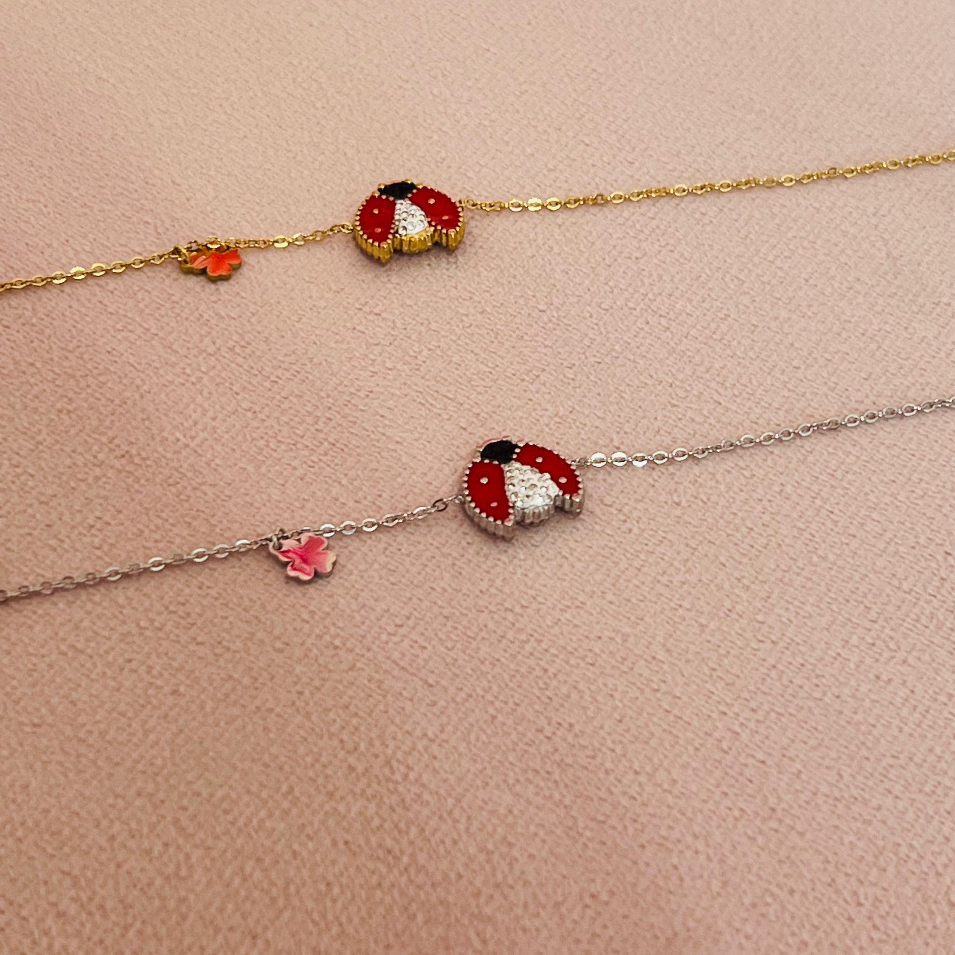 Bracciale coccinella in acciaio inossidabile oro e argento