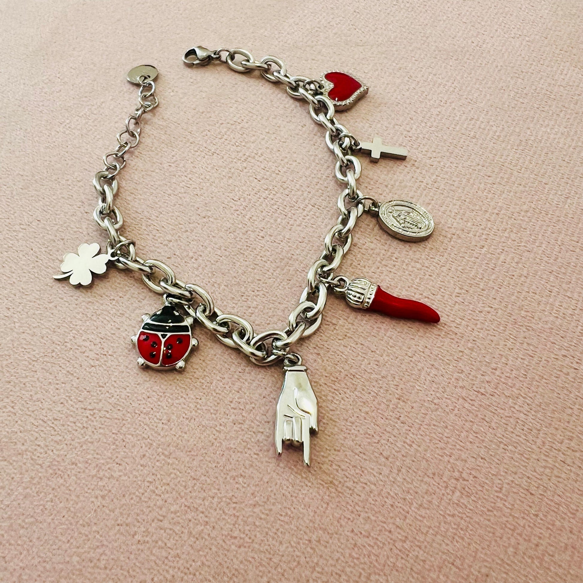 Bracciale Lucky 2.0 con ciondoli portafortuna in acciaio inossidabile argento.