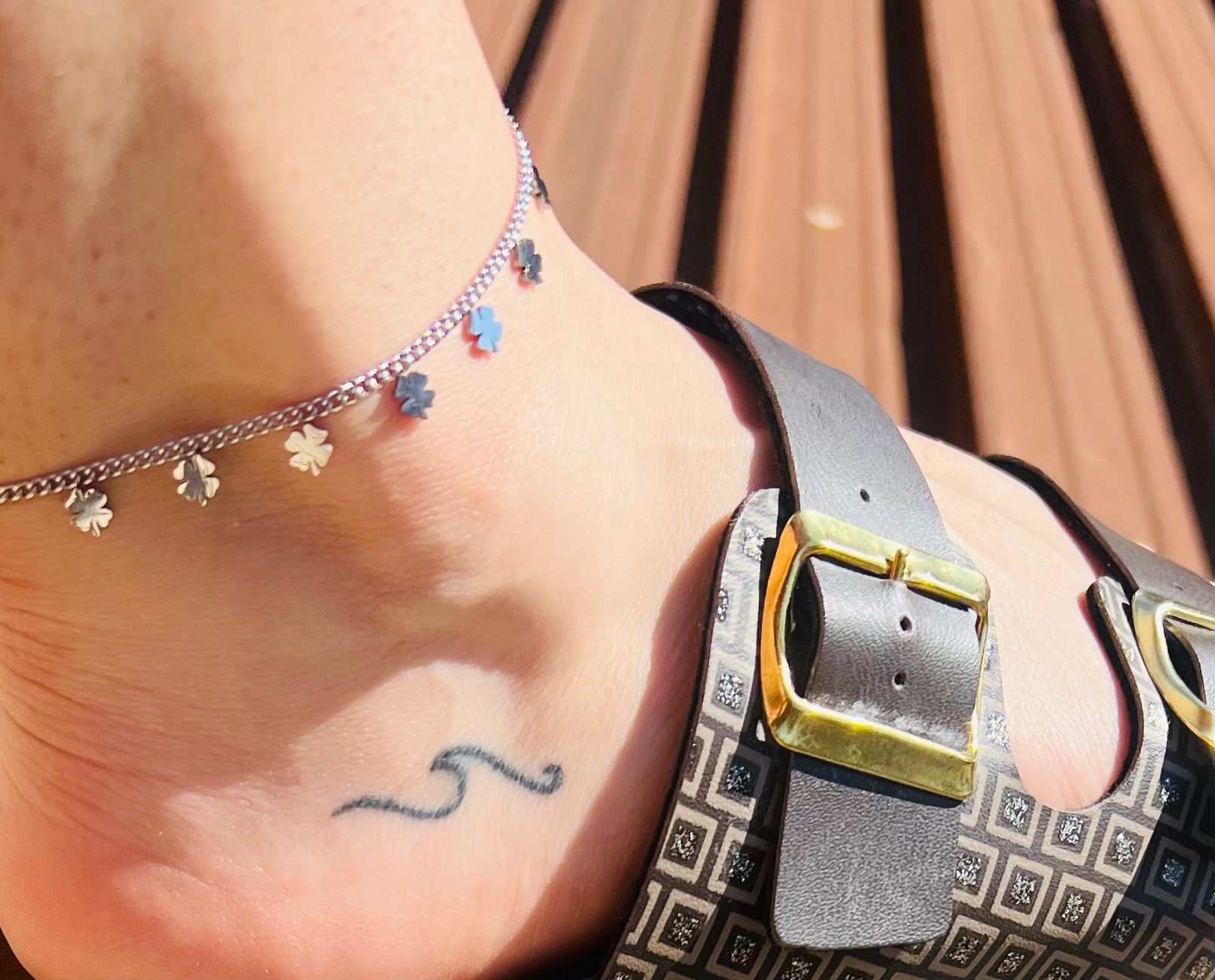 Cavigliera quadrifoglio in acciaio inossidabile argento. La indossi anche al mare e non cambia colore.