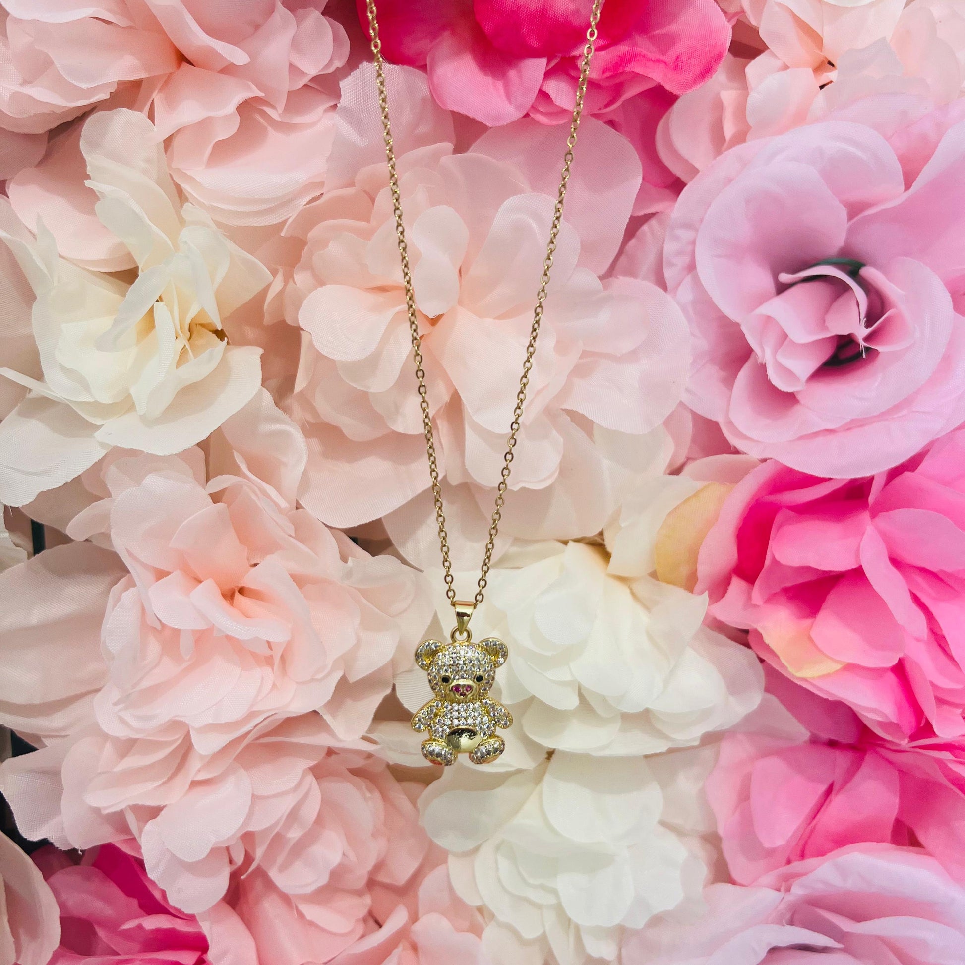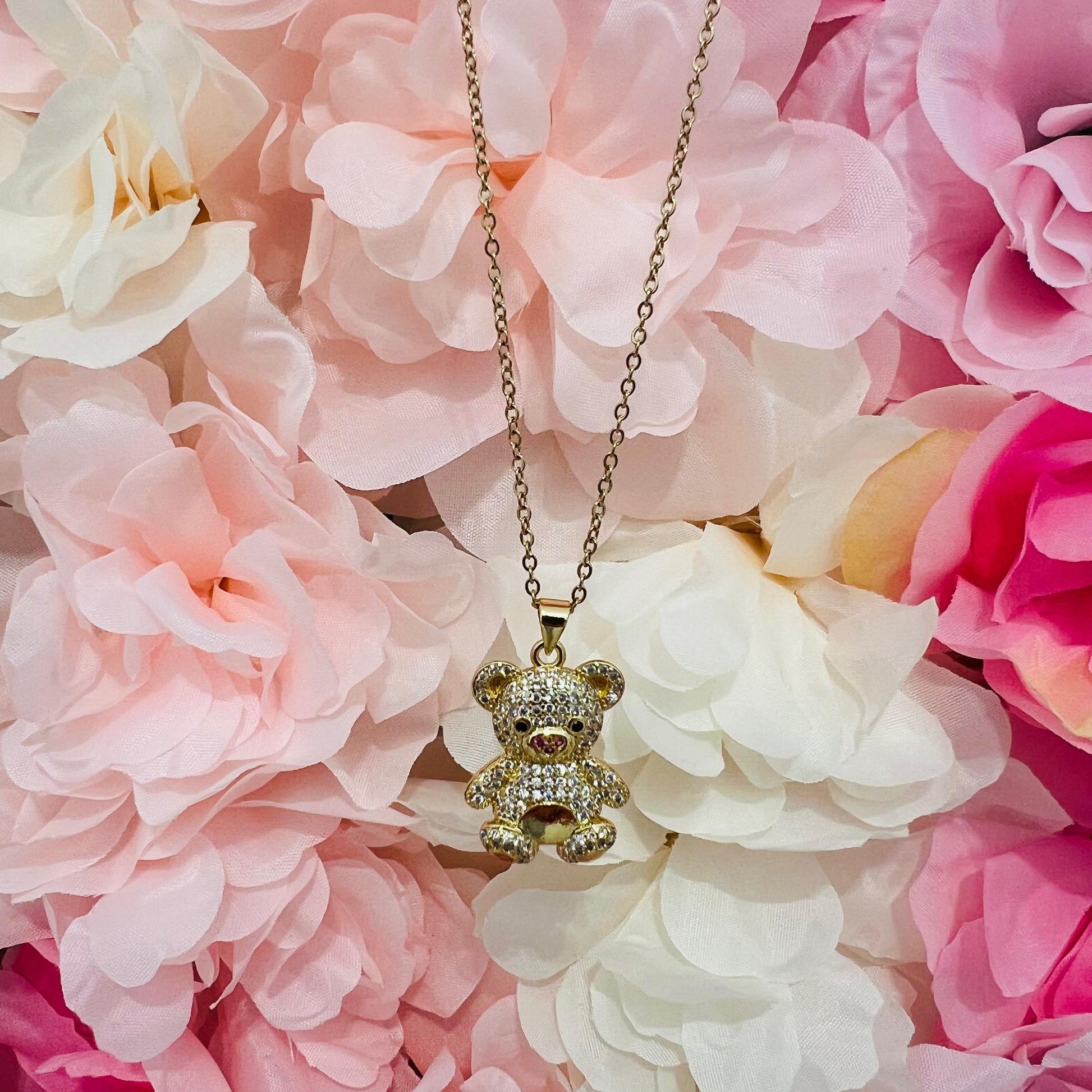 Collana Bear in acciaio inossidabile oro con zirconi.
