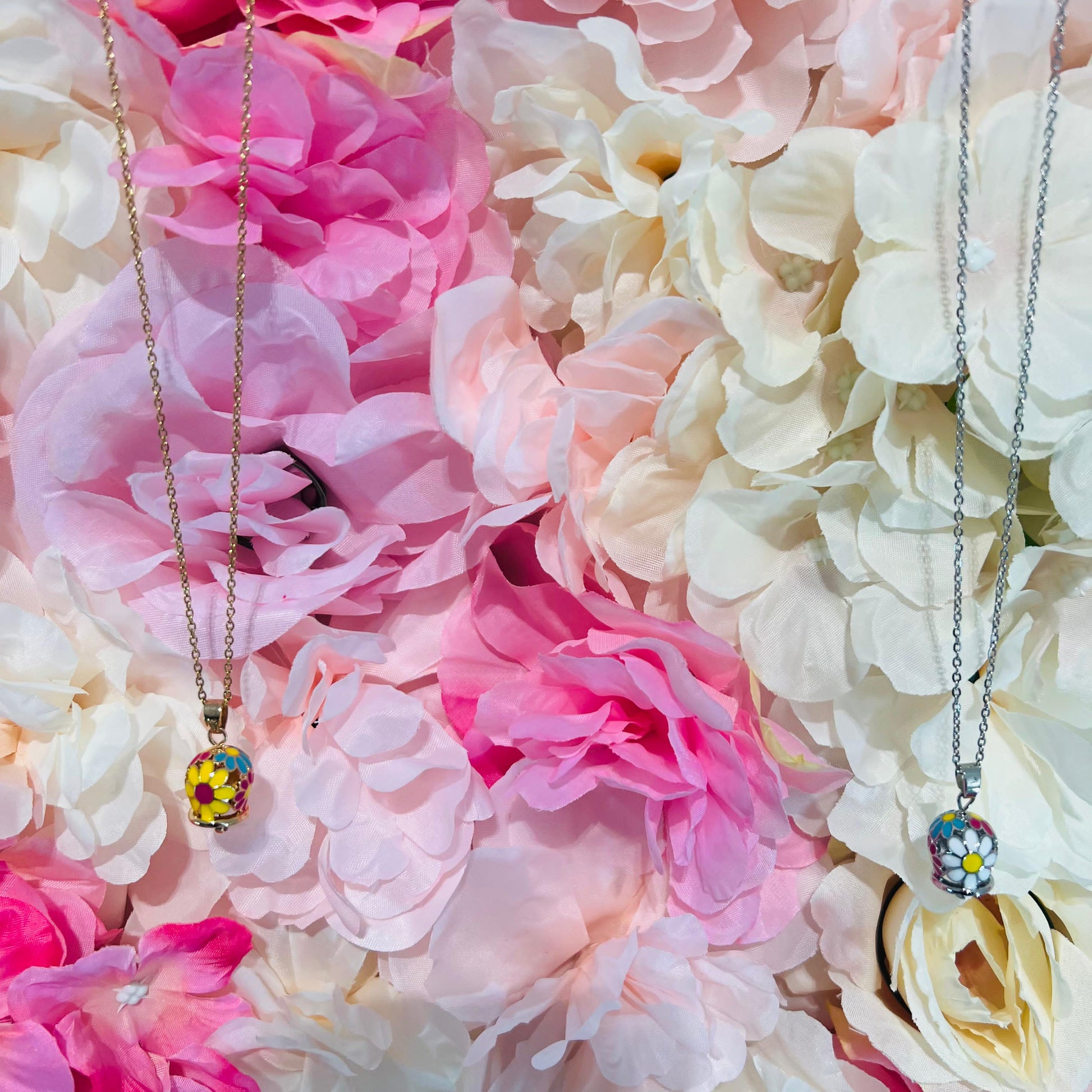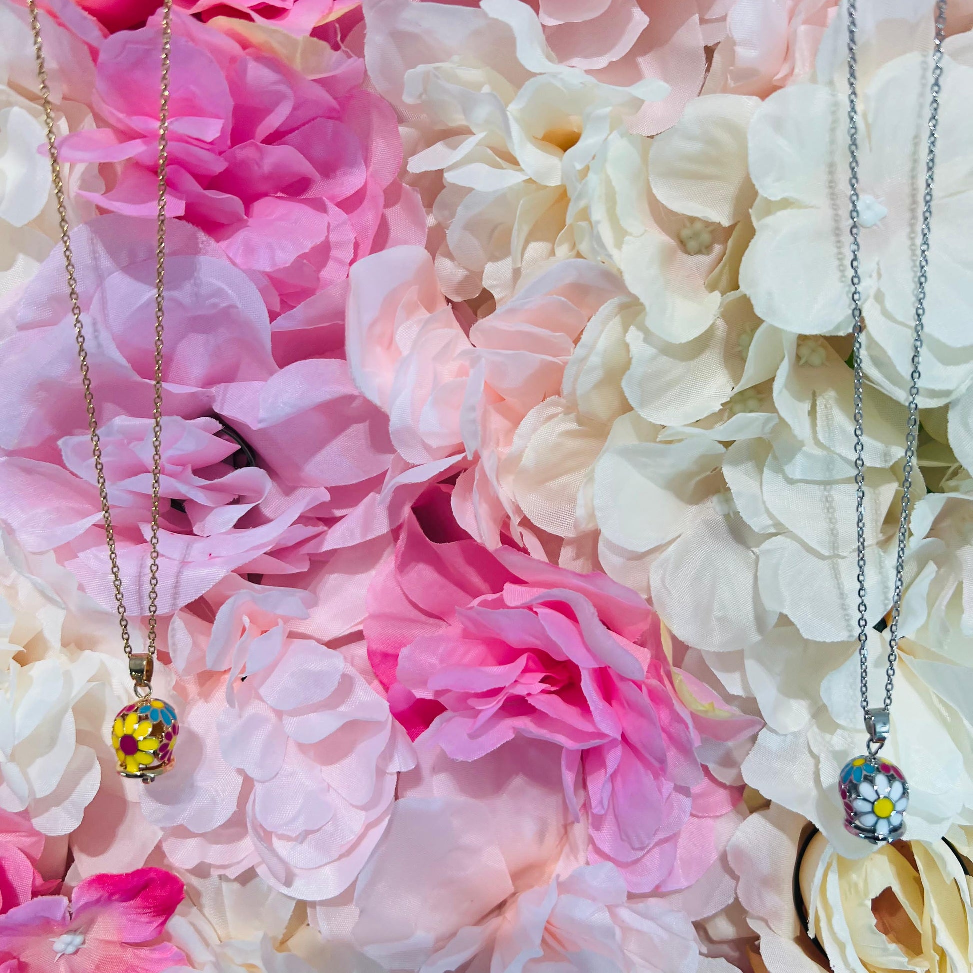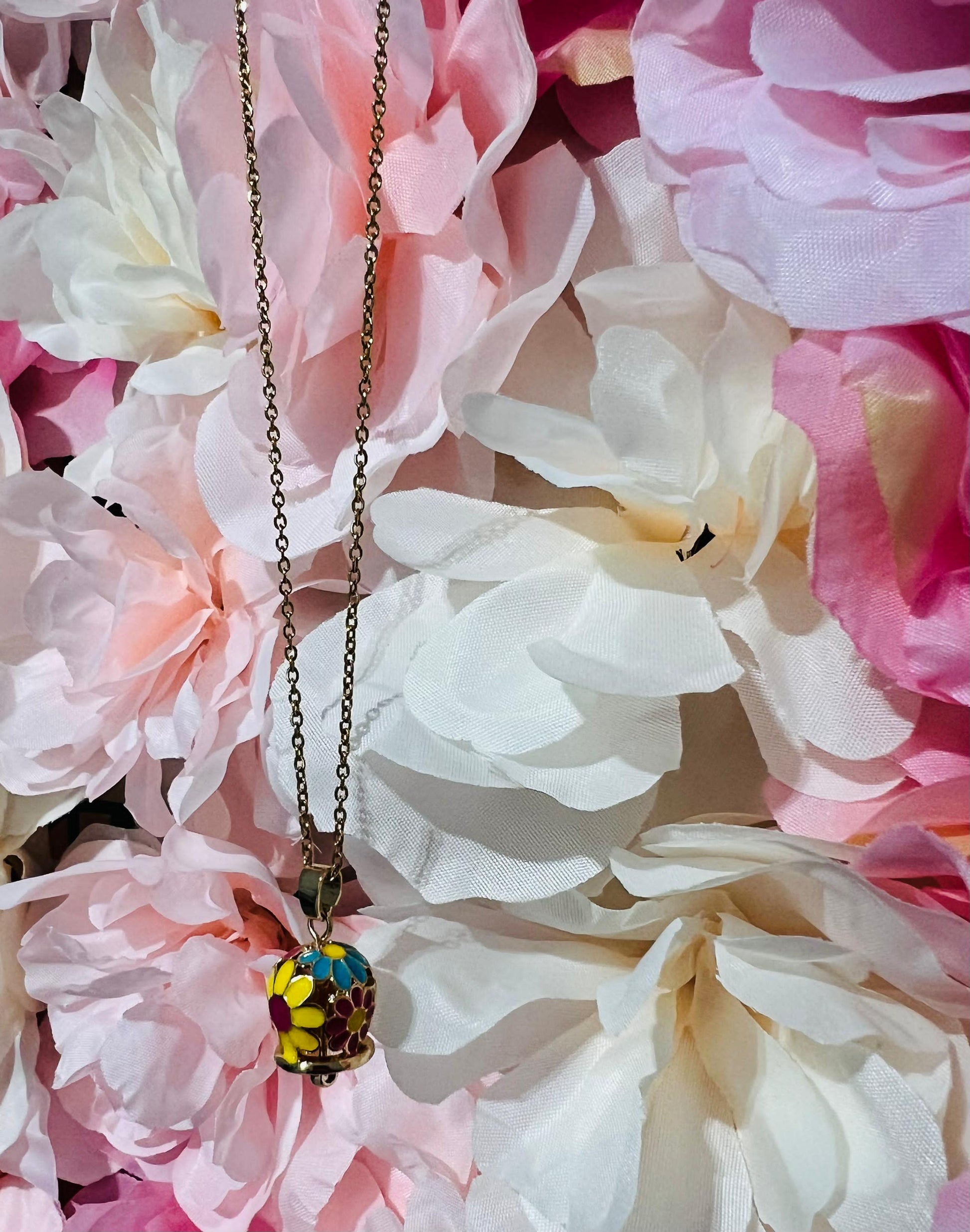 Collana campanella Flower in acciaio inossidabile oro e argento con fiori colorati.