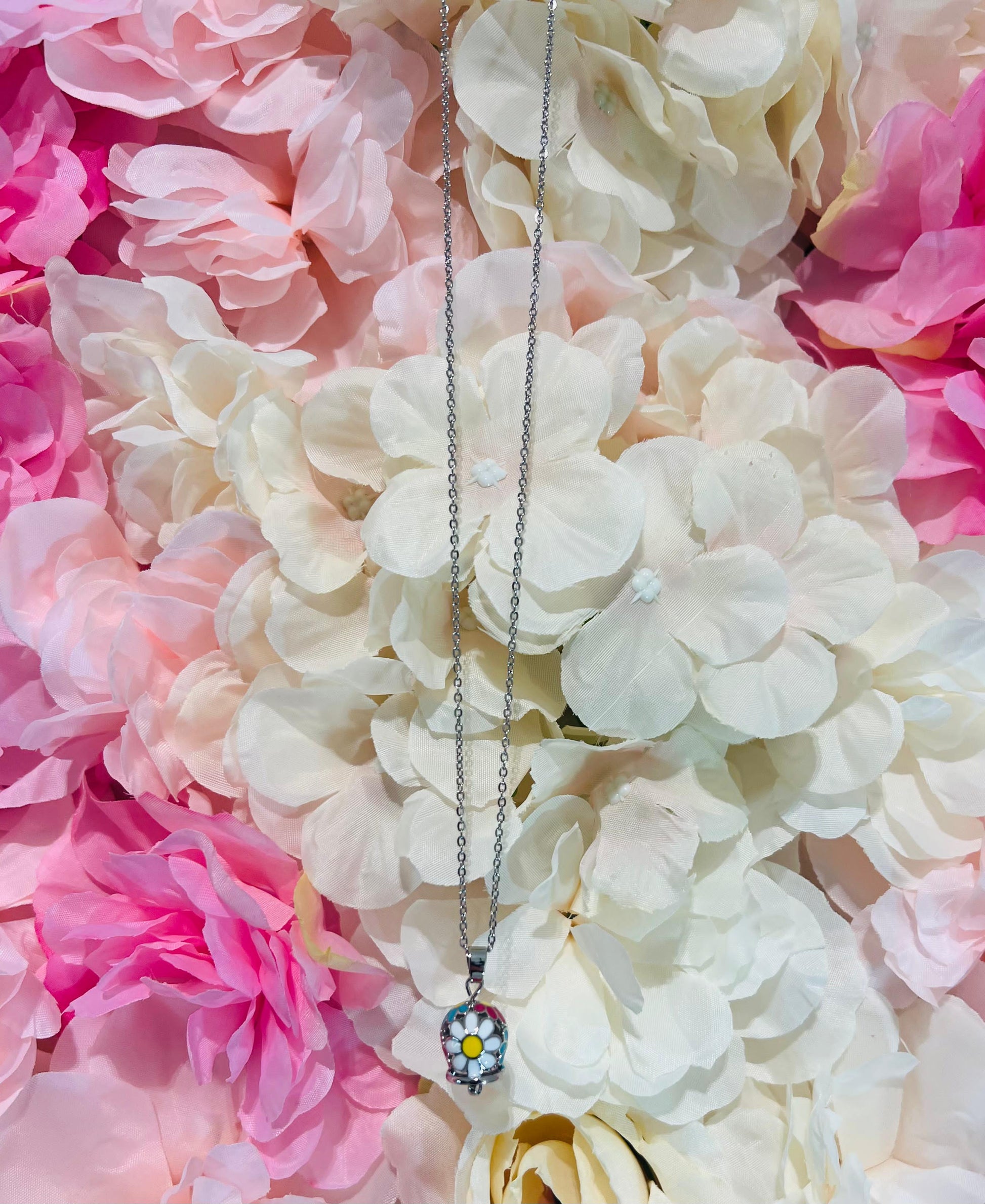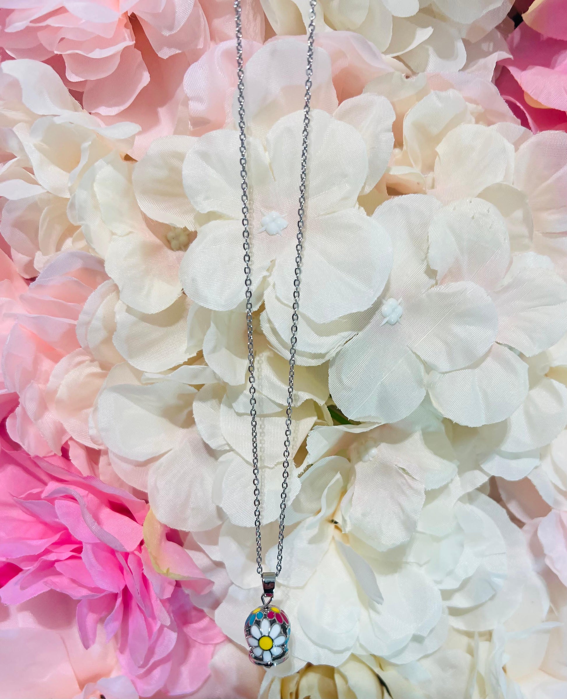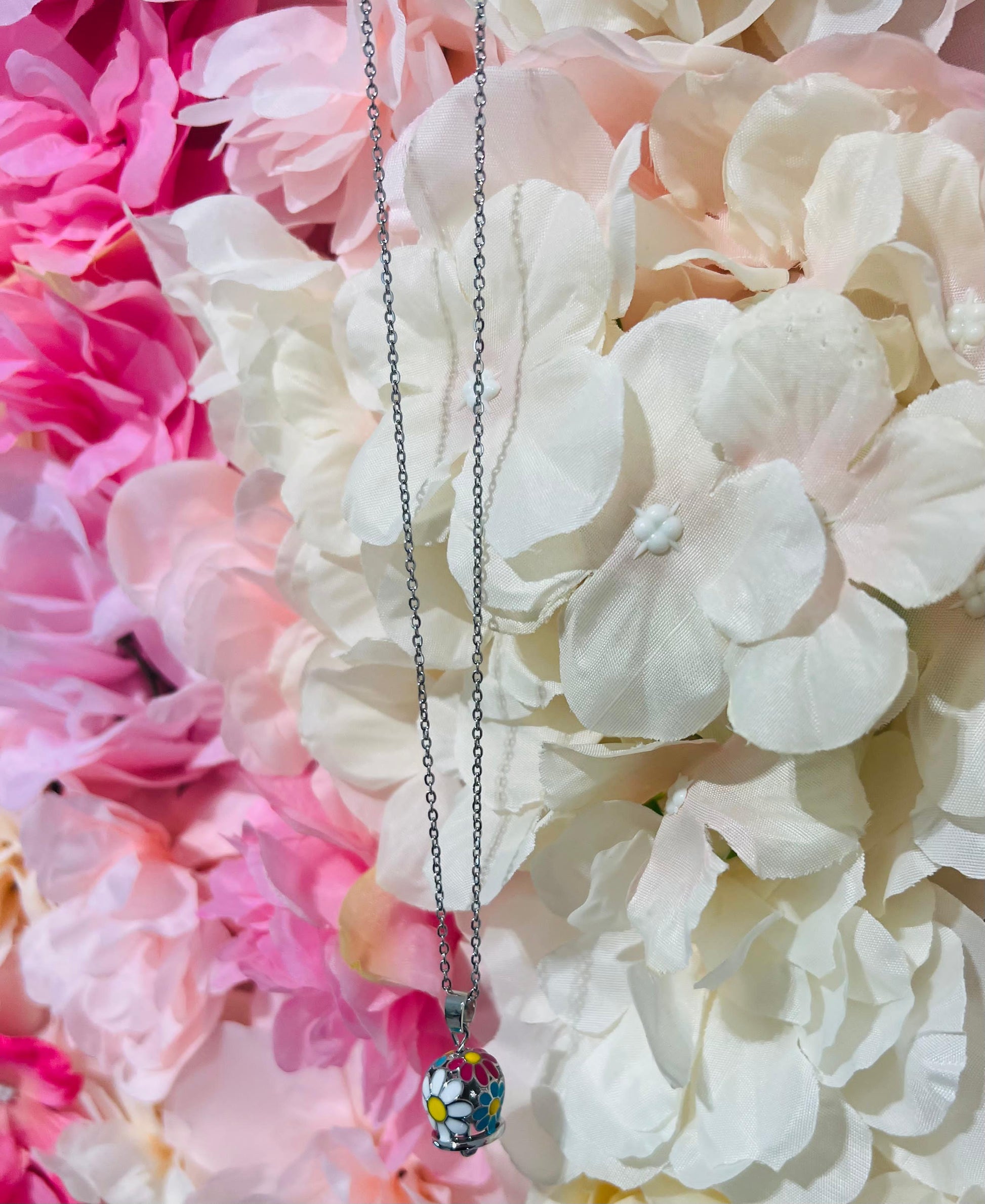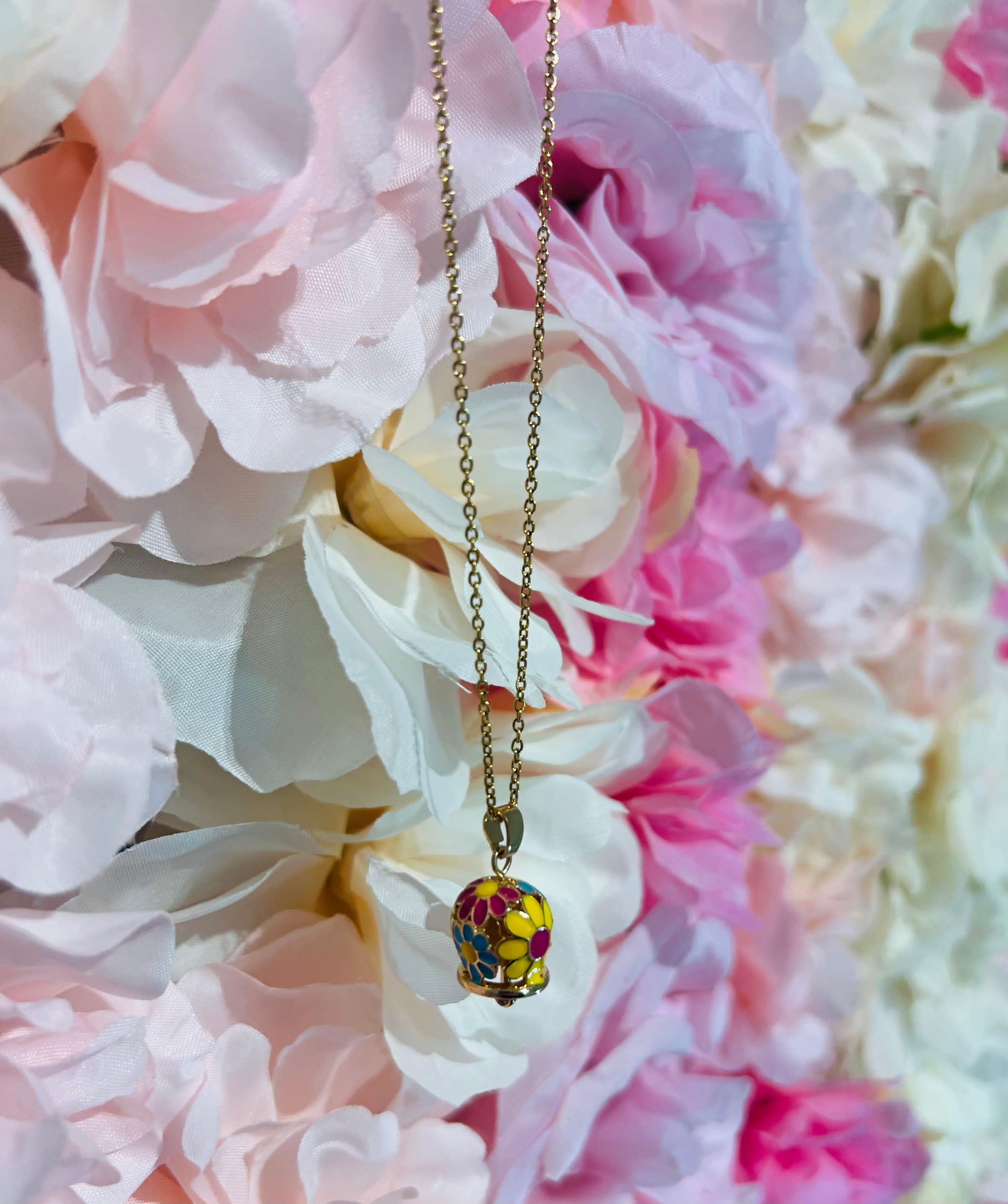 Collana campanella Flower in acciaio inossidabile oro e argento con fiori colorati.