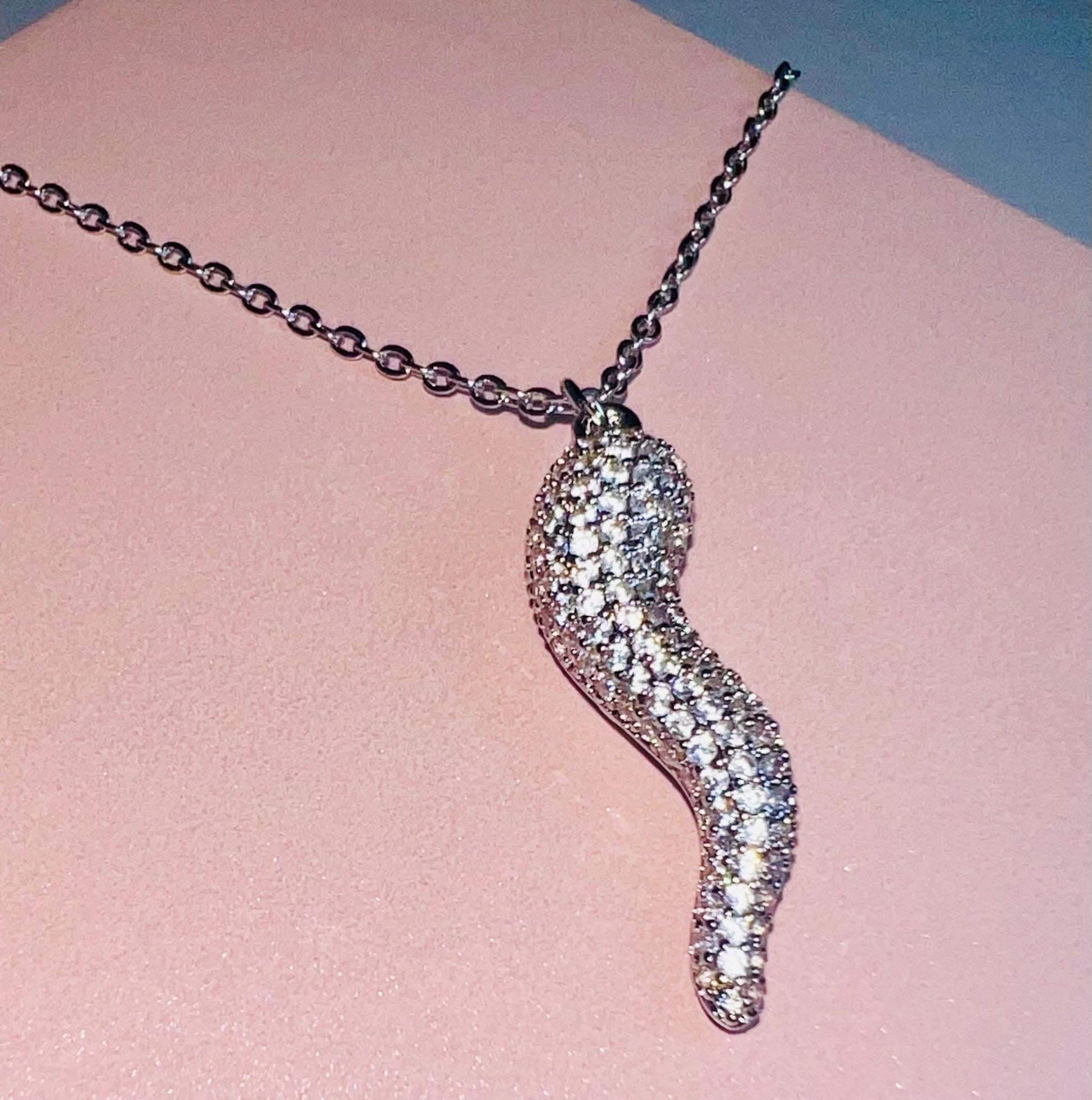 Collana Corno Zirconi in acciaio inossidabile argento.