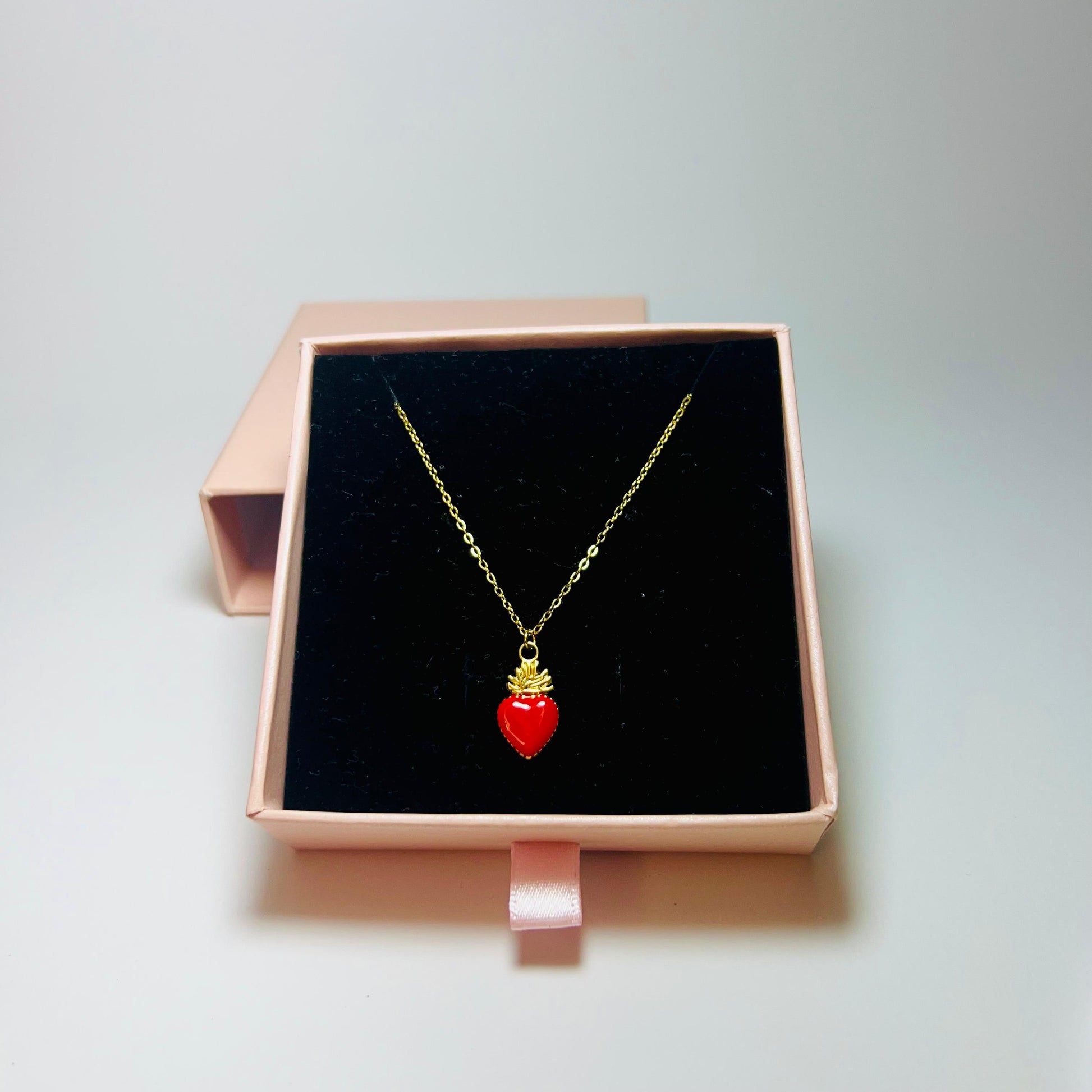Collana cuore sacro oro e rosso