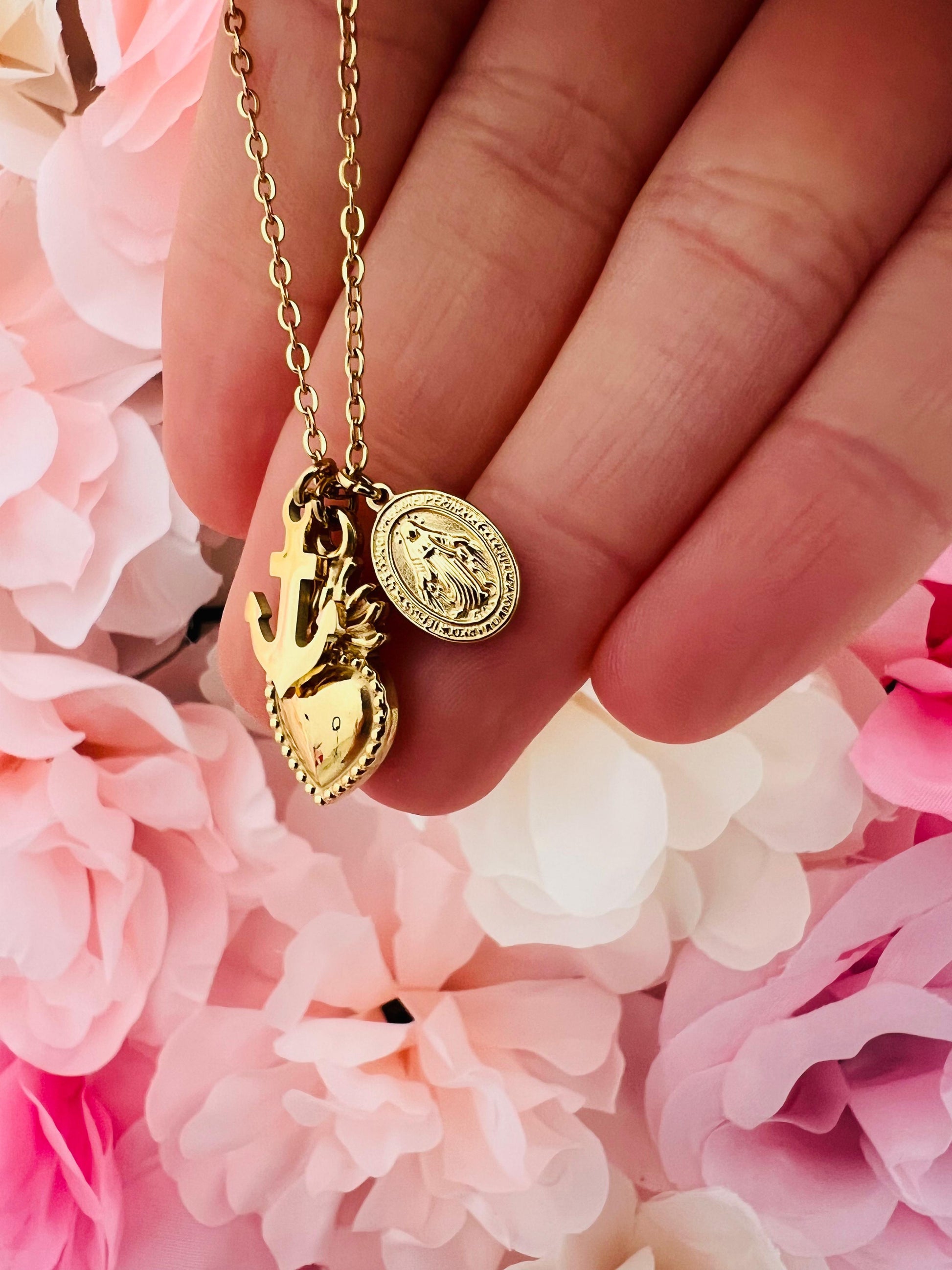 Collana Lucky con ciondoli portafortuna in acciaio inossidabile.