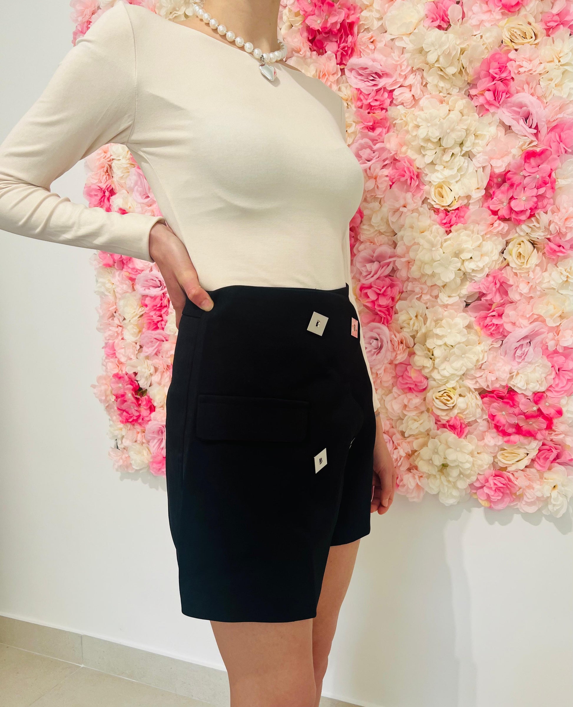 Dettaglio bottoni in argento. Chiusura posteriore con cerniera nascosta nella cucitura