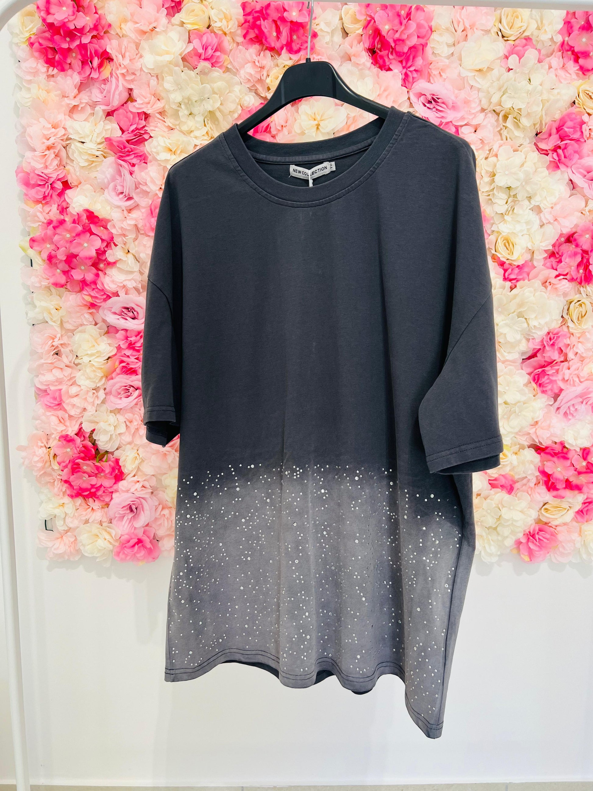 T-shirt effetto slavato con brillantini.